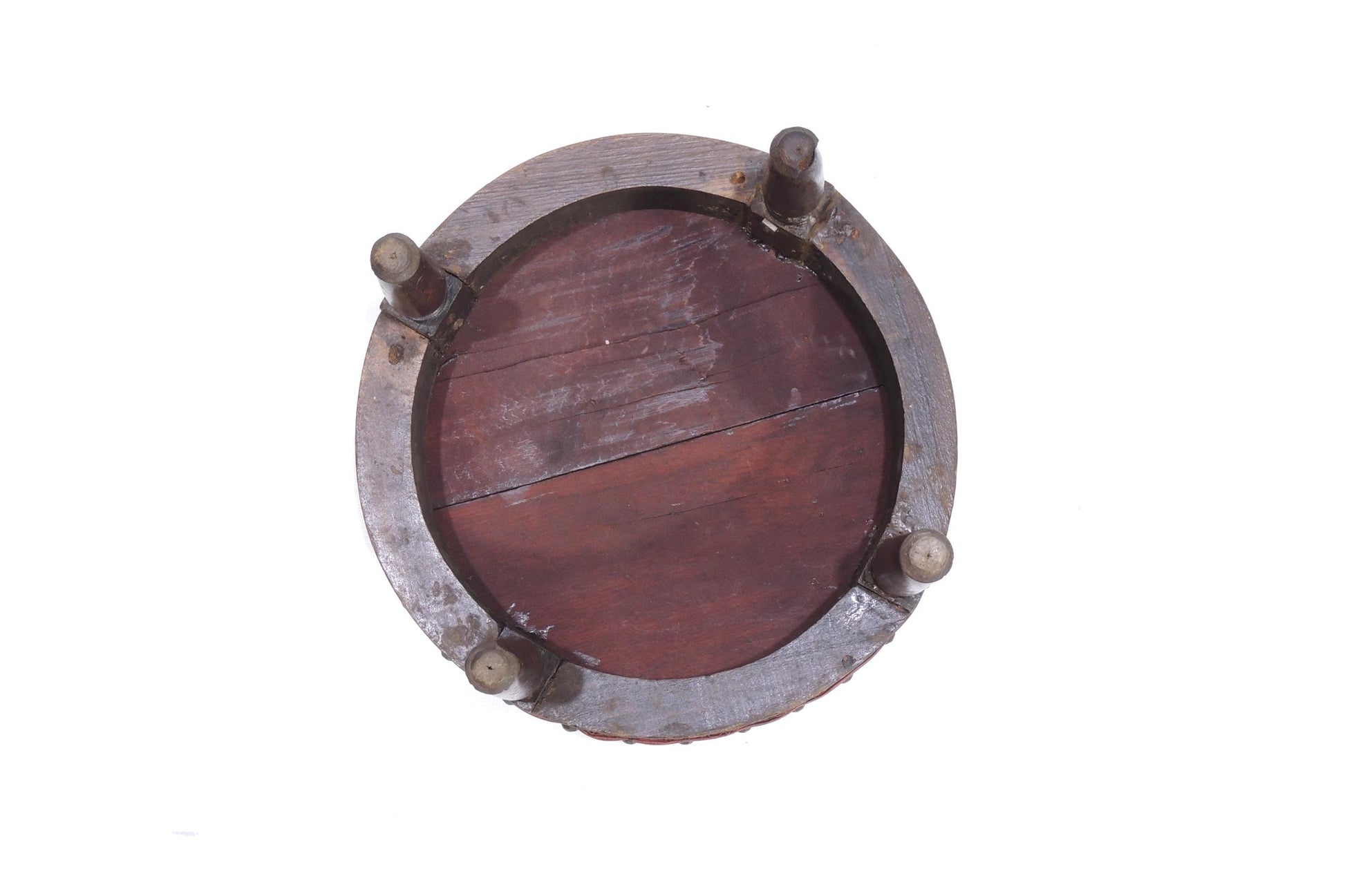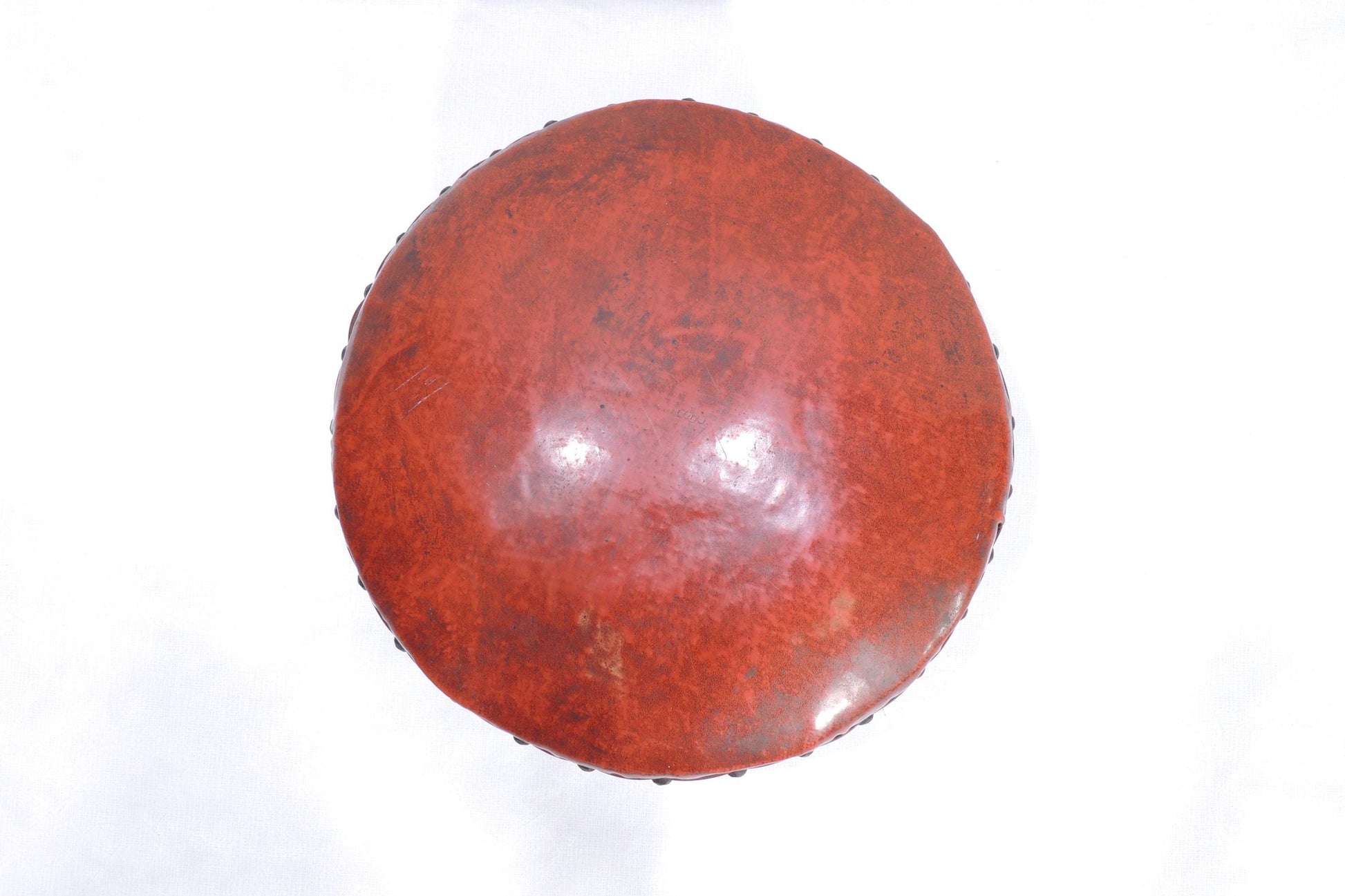 Antique Red Vinyl Wood Carved Ornate Footstool