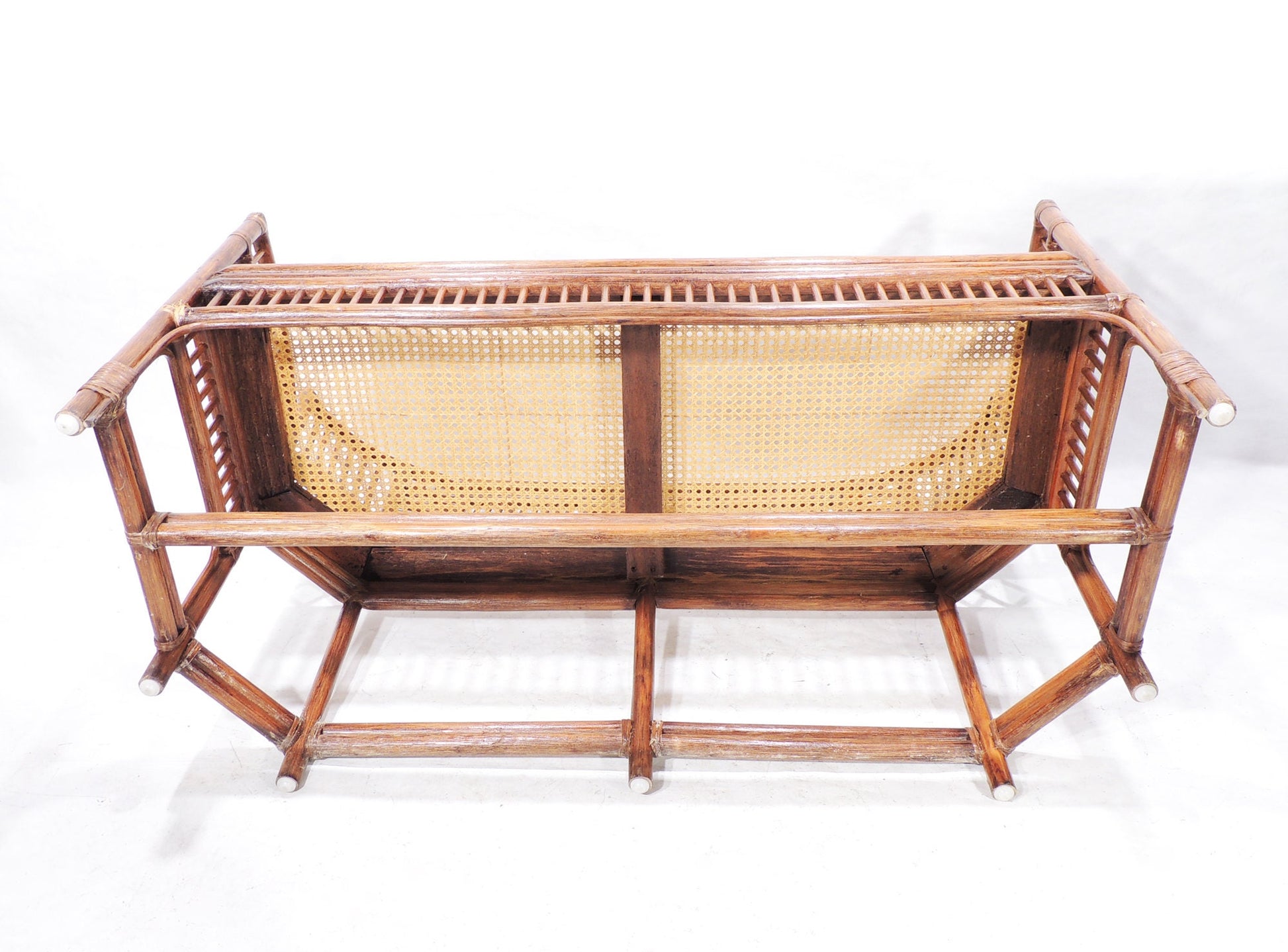 Vintage Caned Seating Bamboo Pavilion Loveseat Bench