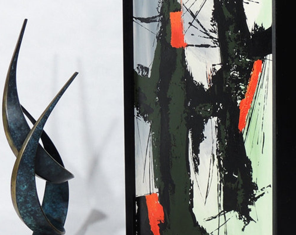 MCM Era Original Kovaci Abstract Expressionist Orange Black Signed Painting