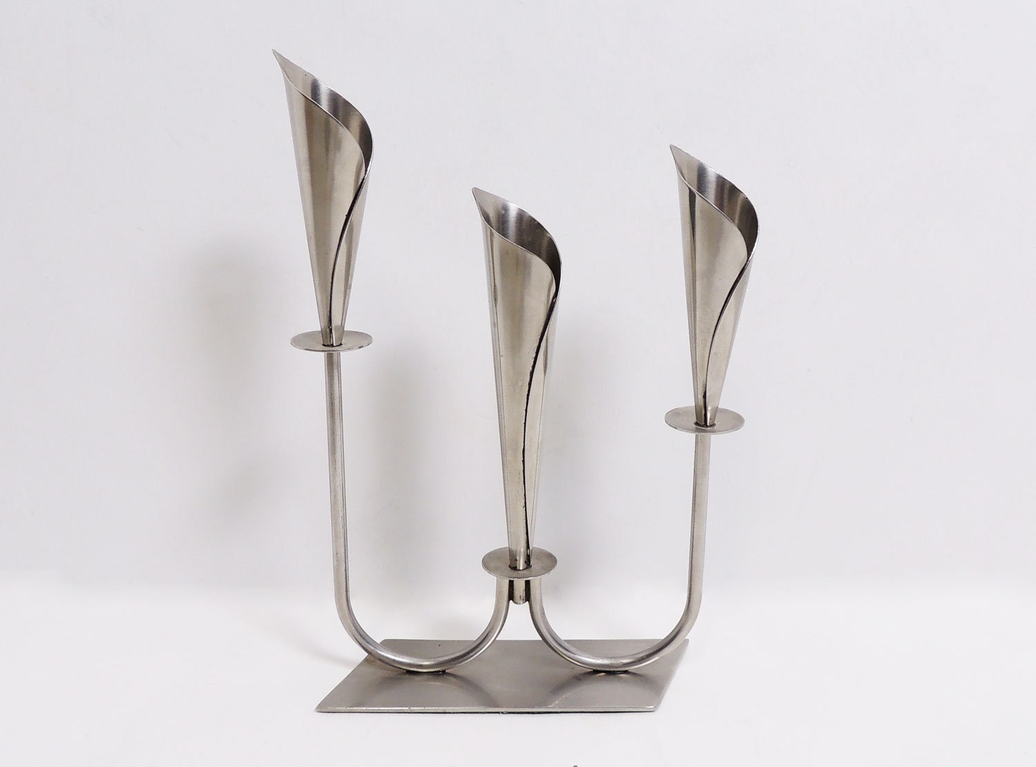 MCM era Metal Hans Jensen Style Tulip Candle Holders