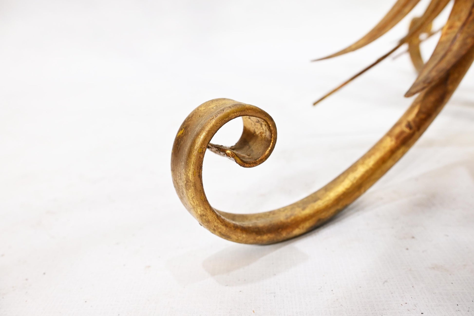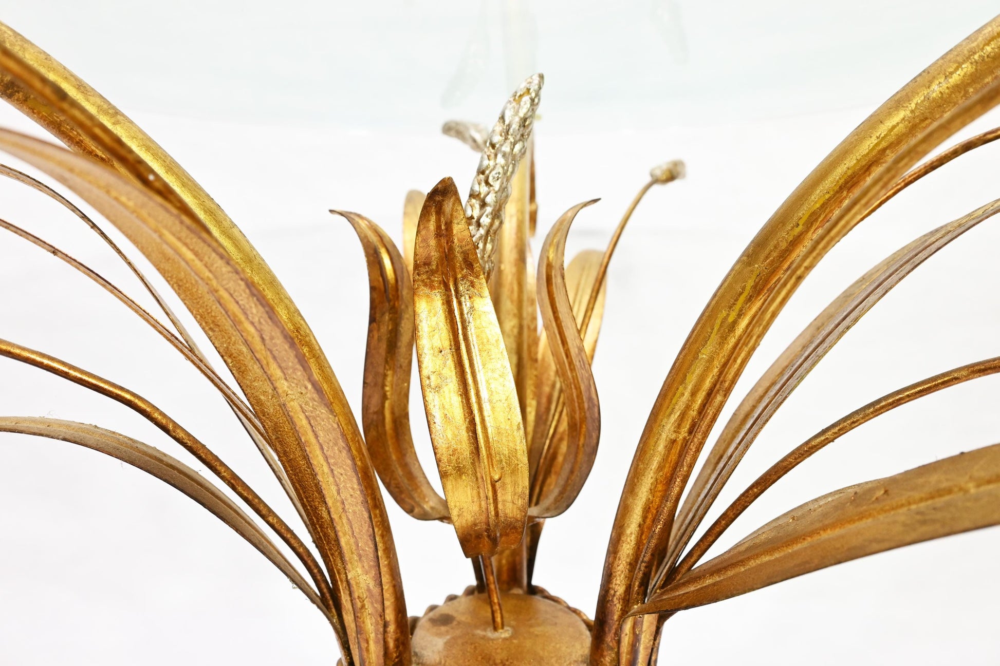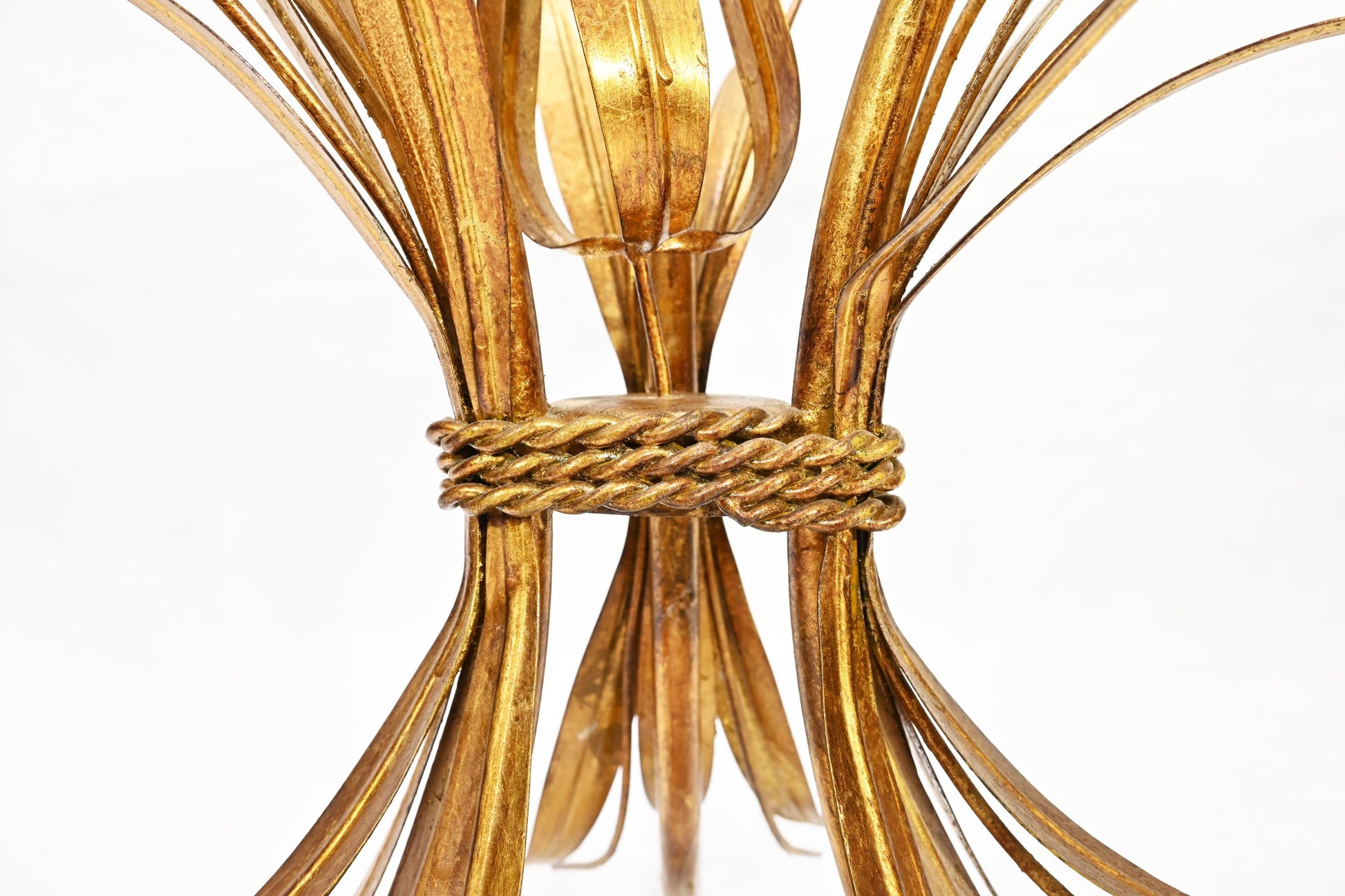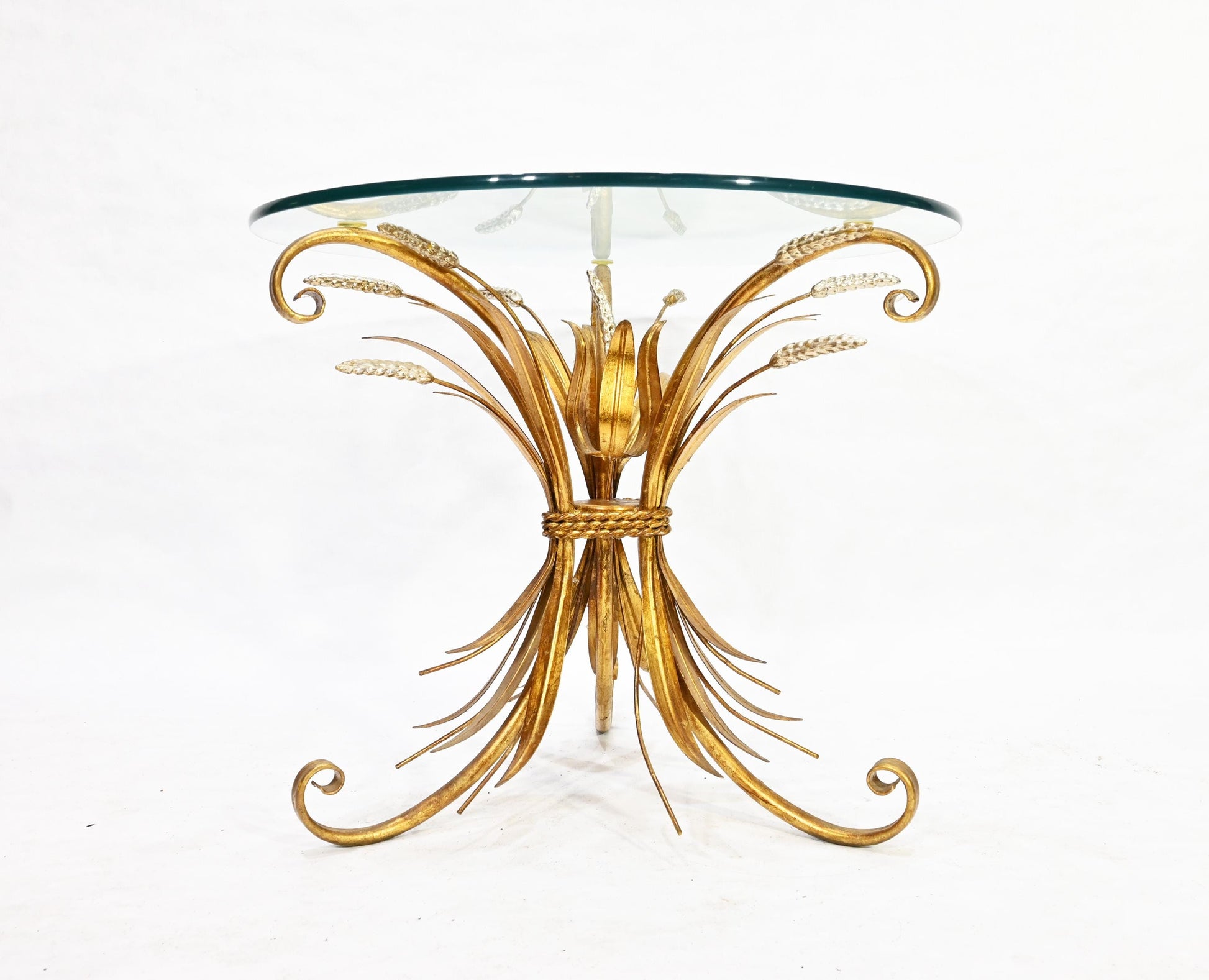 Modernist Era Hollywood Regency Wheat Metal Gilt Tole Round Glass Side Table