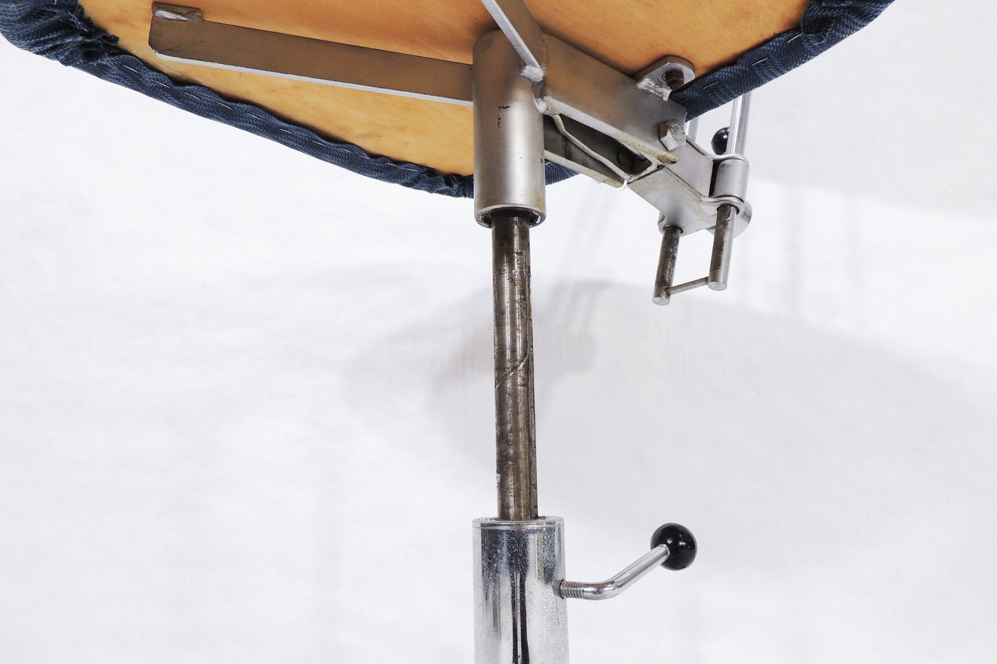 Modernist Era Stendig Finland Blue Cloth Height Adjustable Swivel Rolling Desk Chair