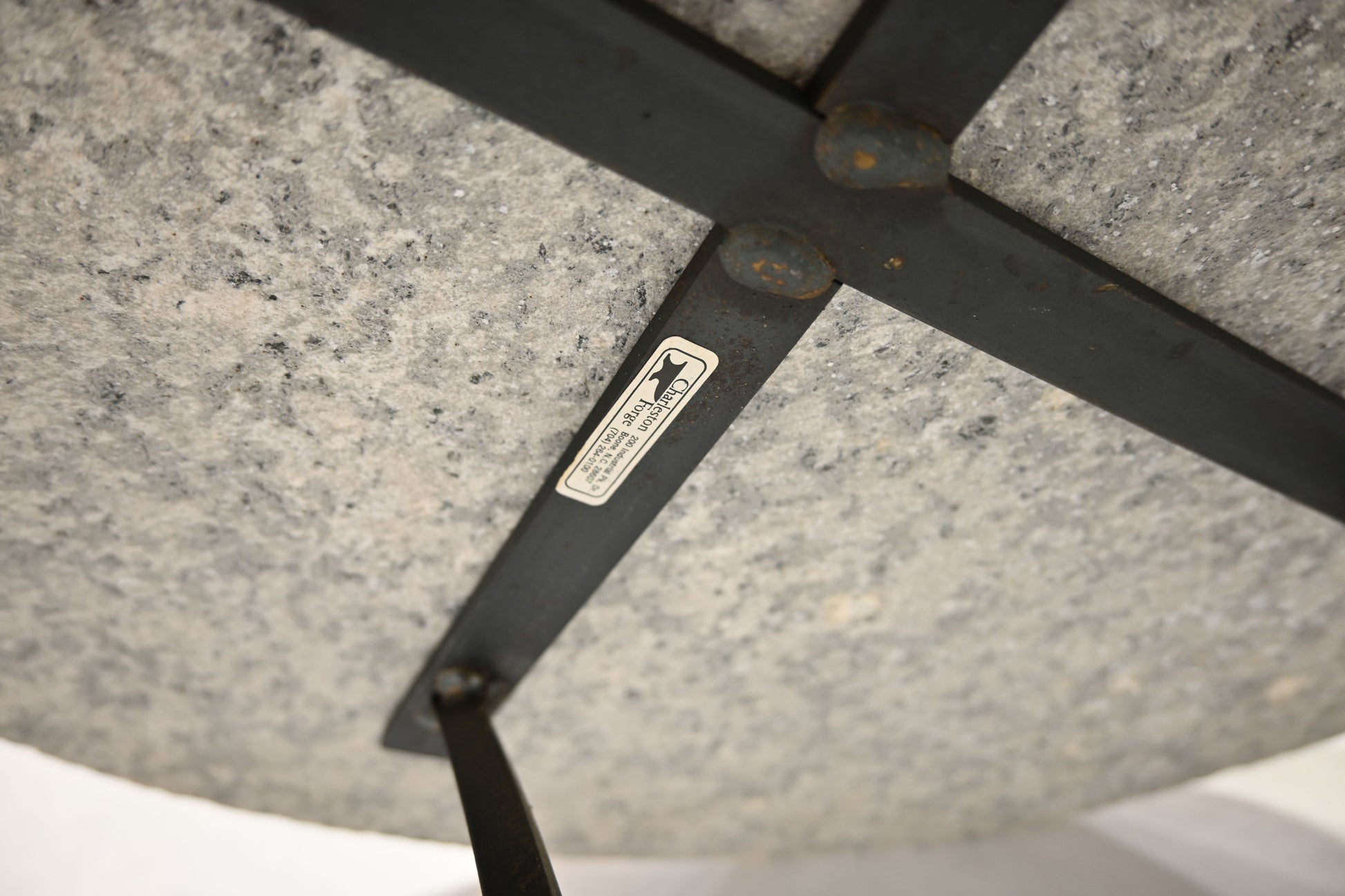heavy wrought iron frame, removable natural stone top