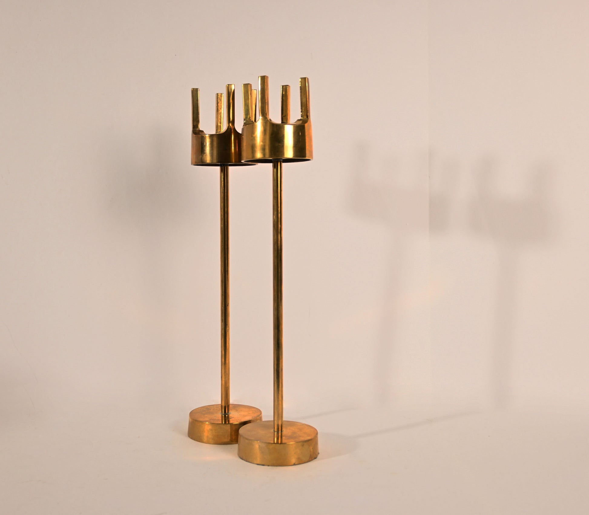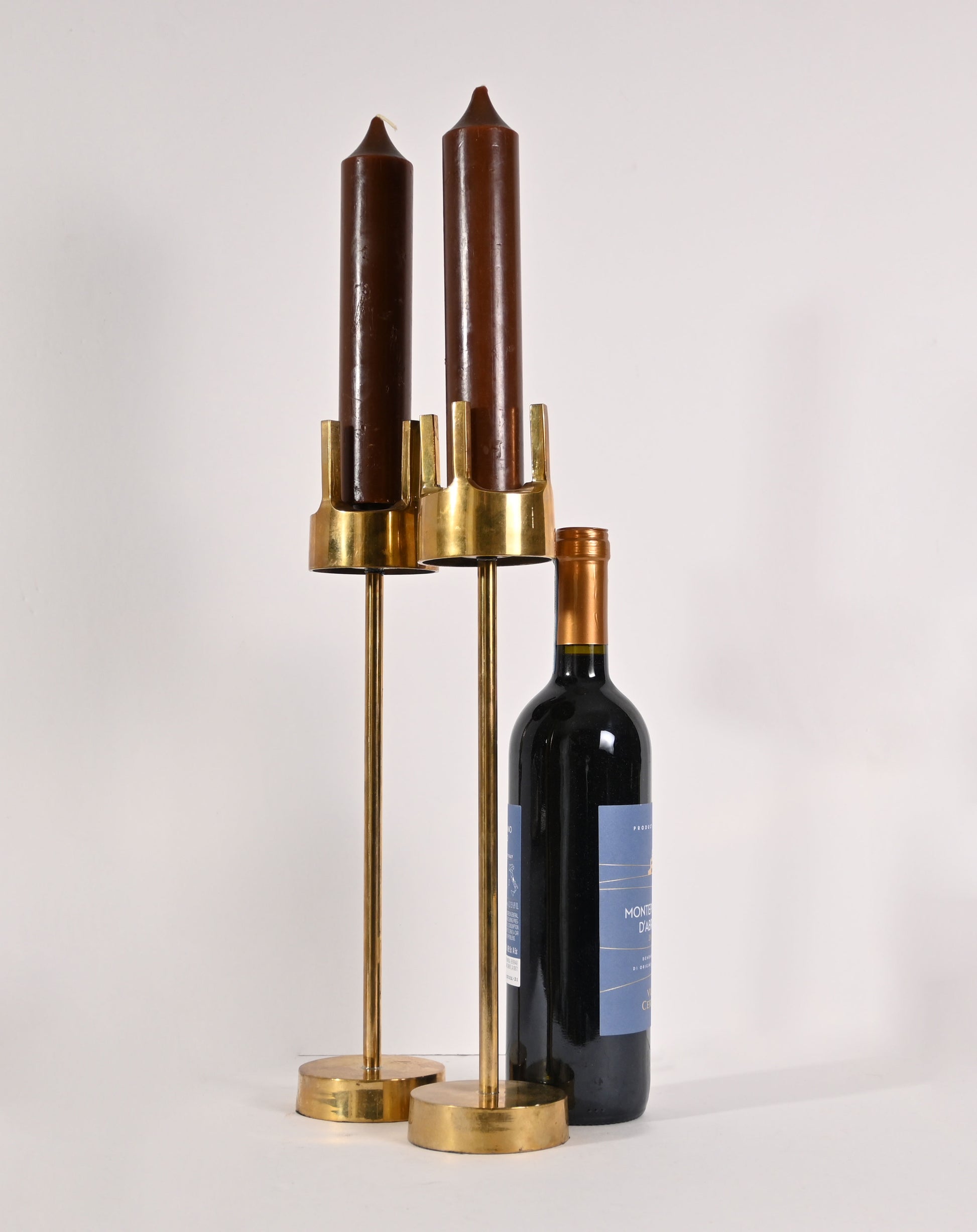 Pair of Vintage Solid Brass Candle Candlestick Holders Pierre Forssell attributed