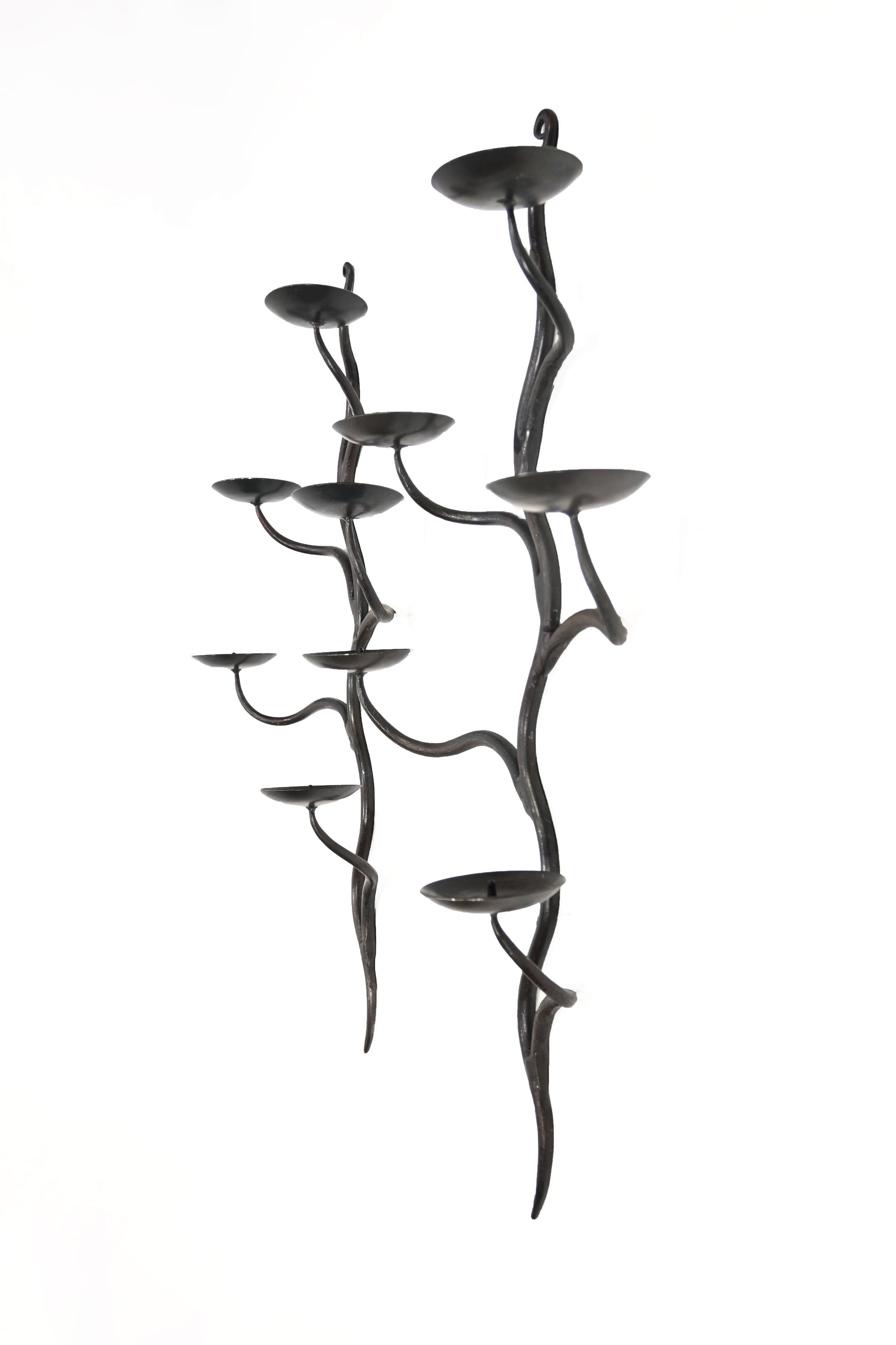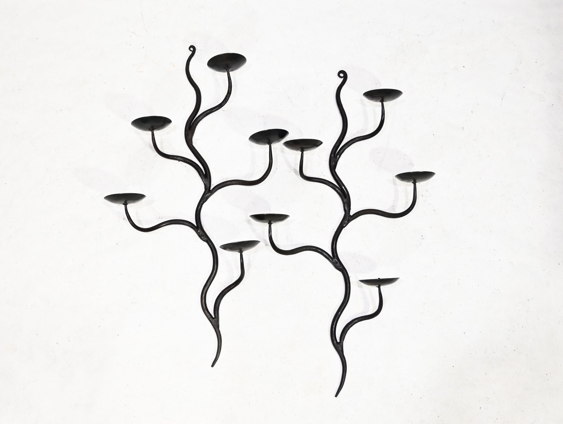 Pair Wrought Iron Vines Wall Candle Holder Sconces