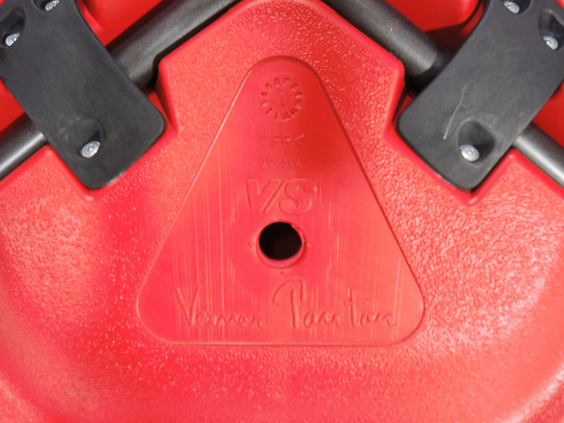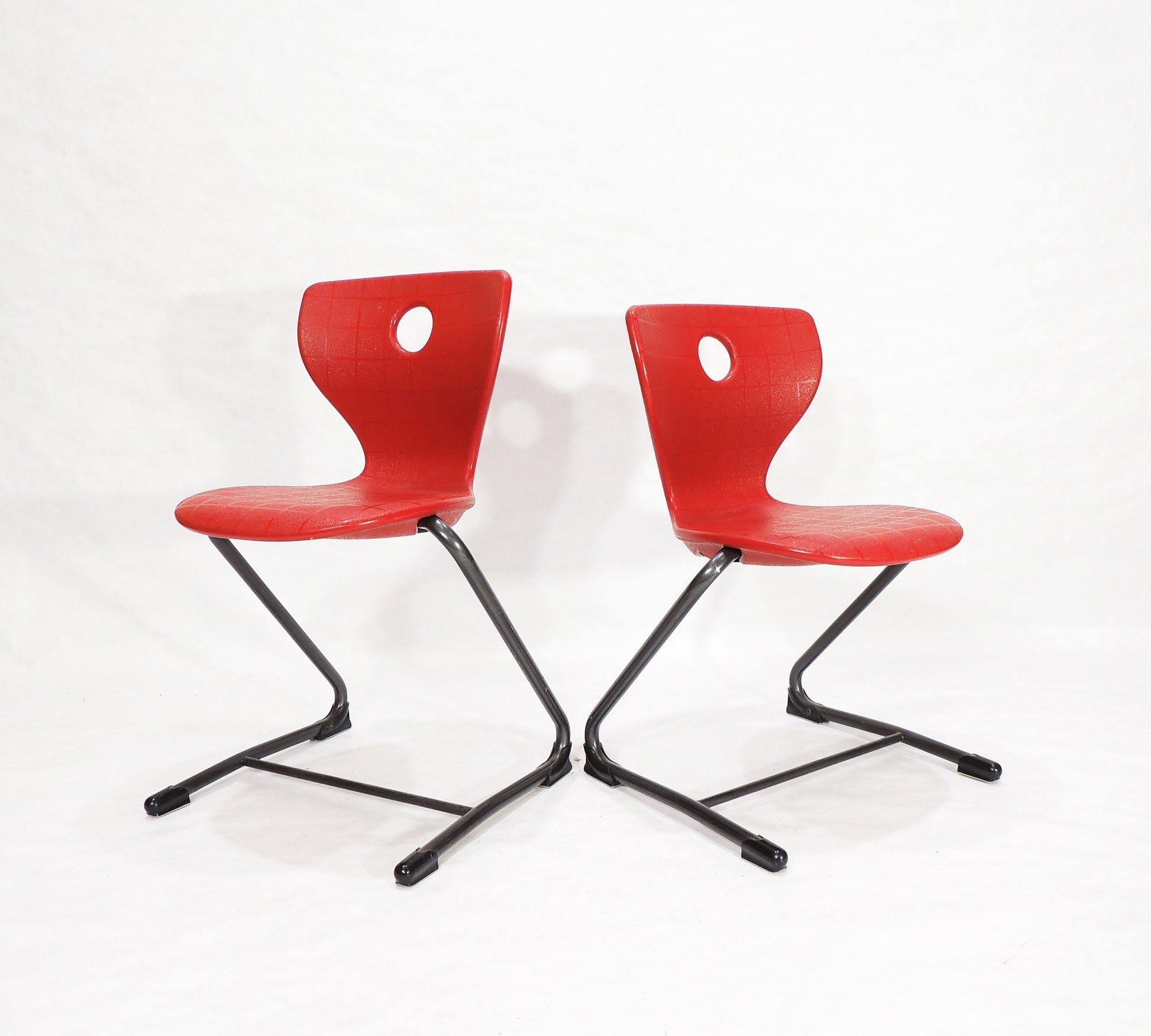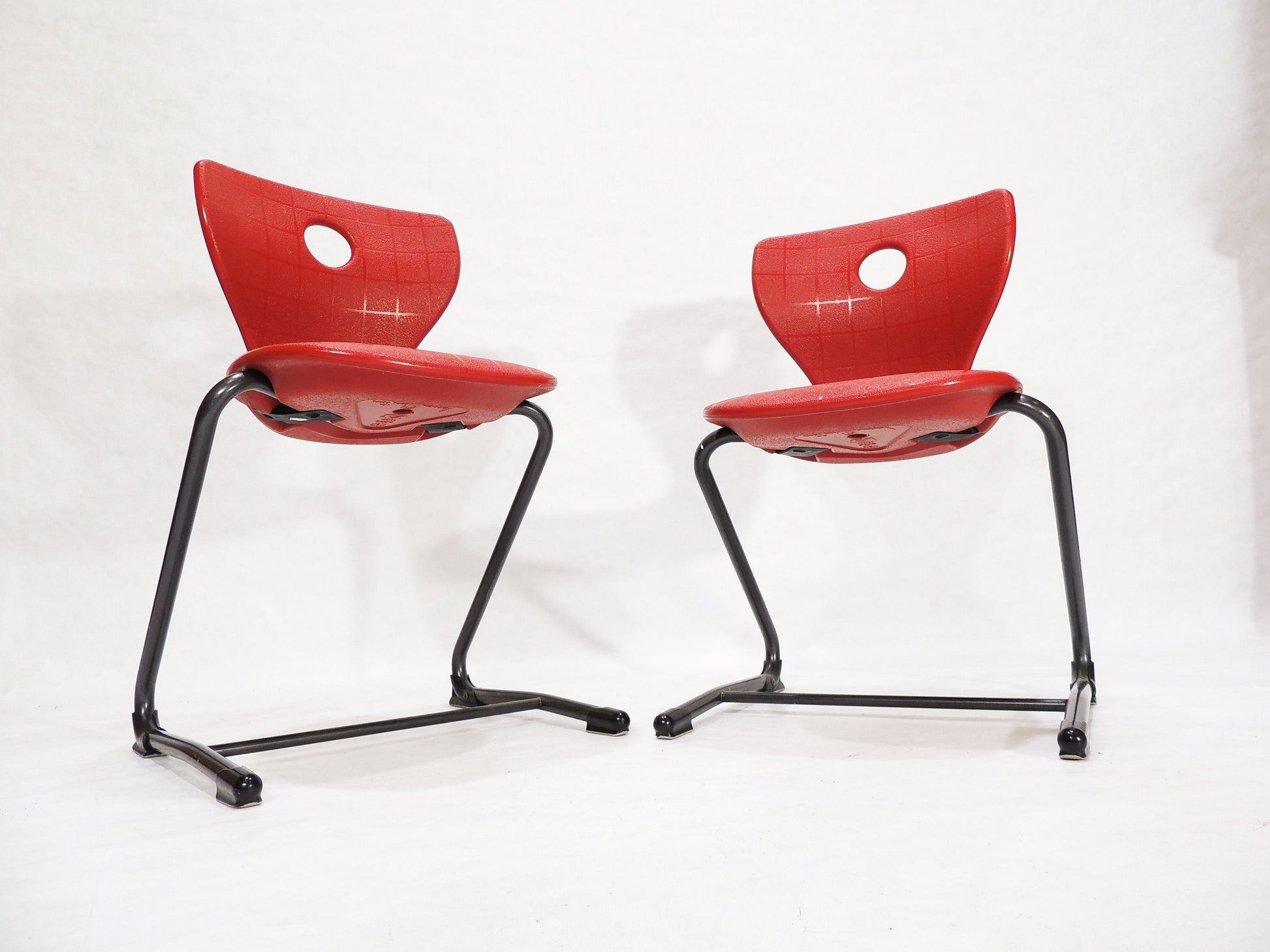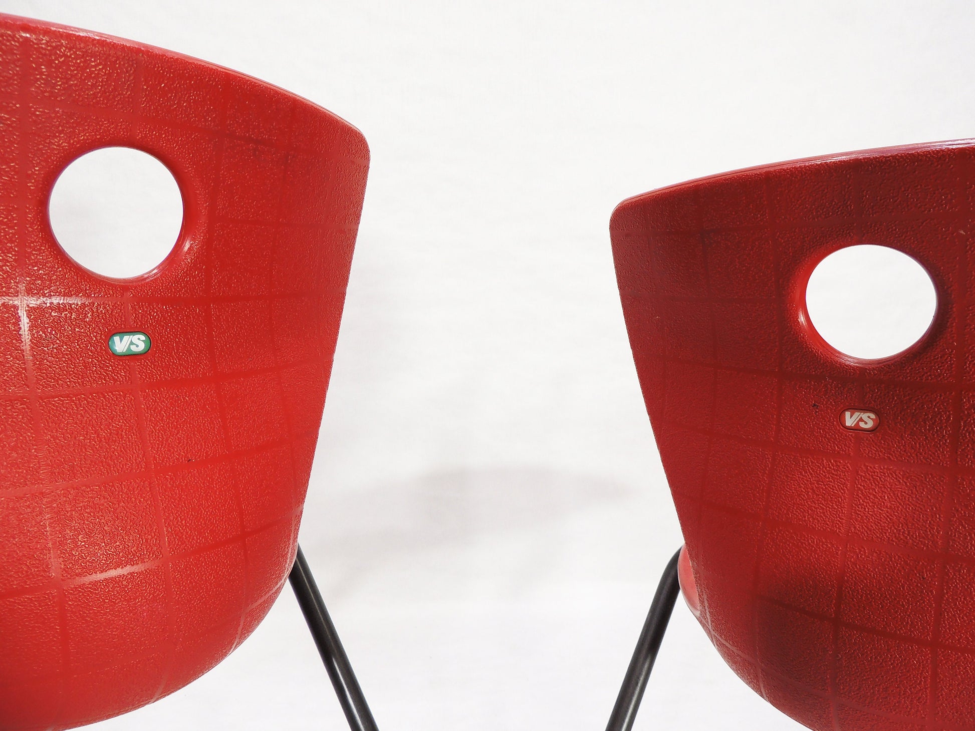 Set of 2 Post Modern VS Metal Framed Red Plastic Shell Chairs