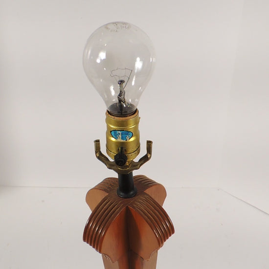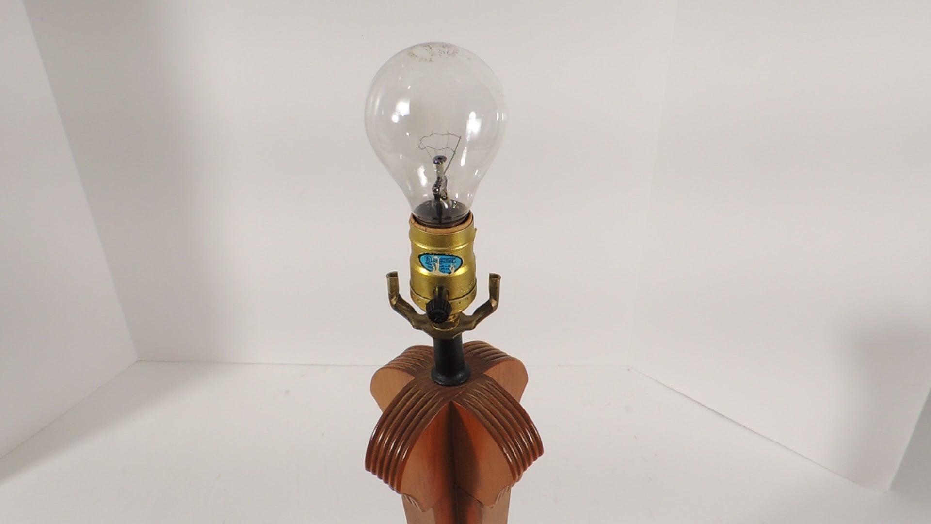 solid wood body, 3-way rotary switch located on the socket, American two-prong plug, accommodates standard light bulbs. Only one available for sale.