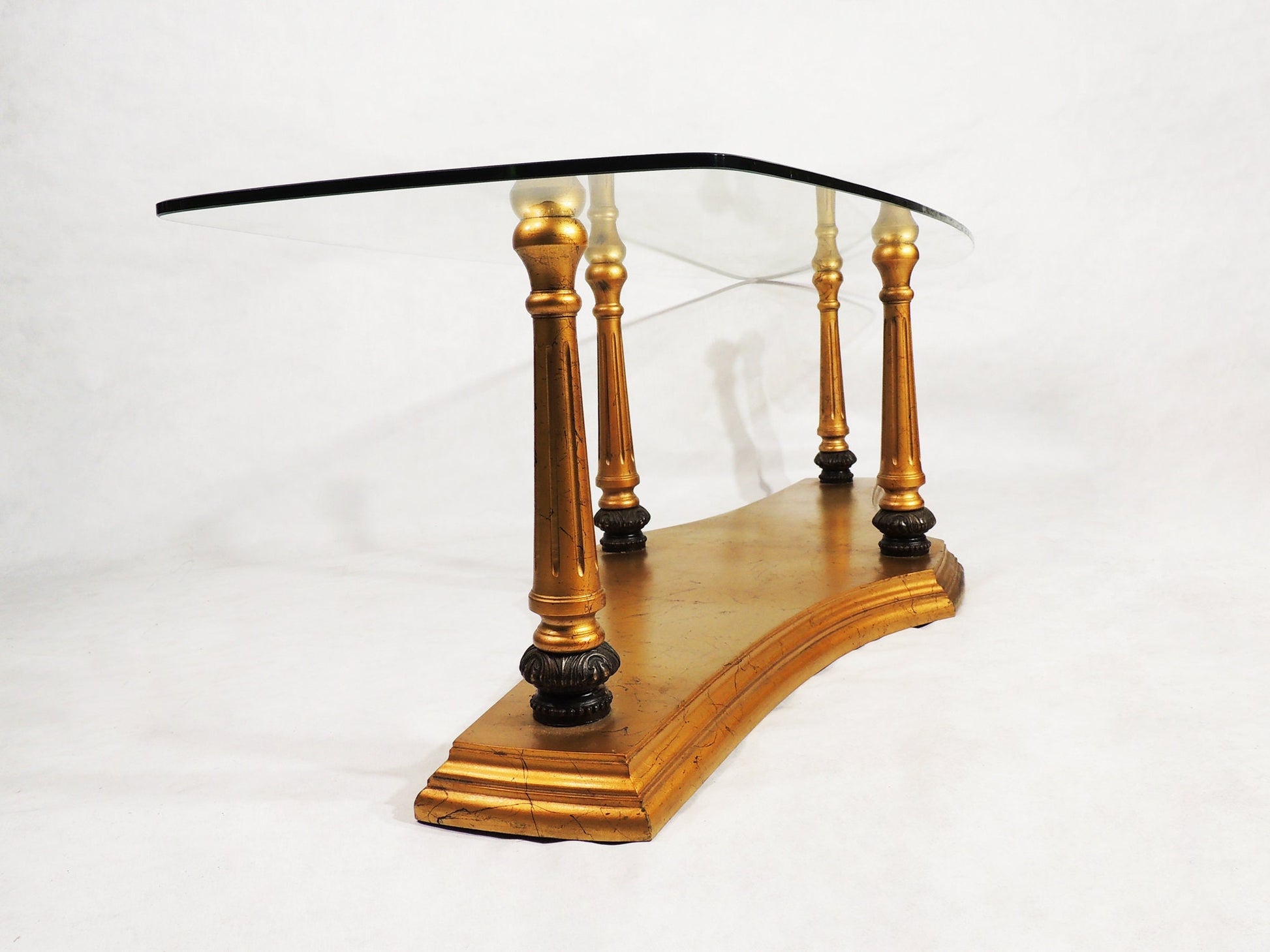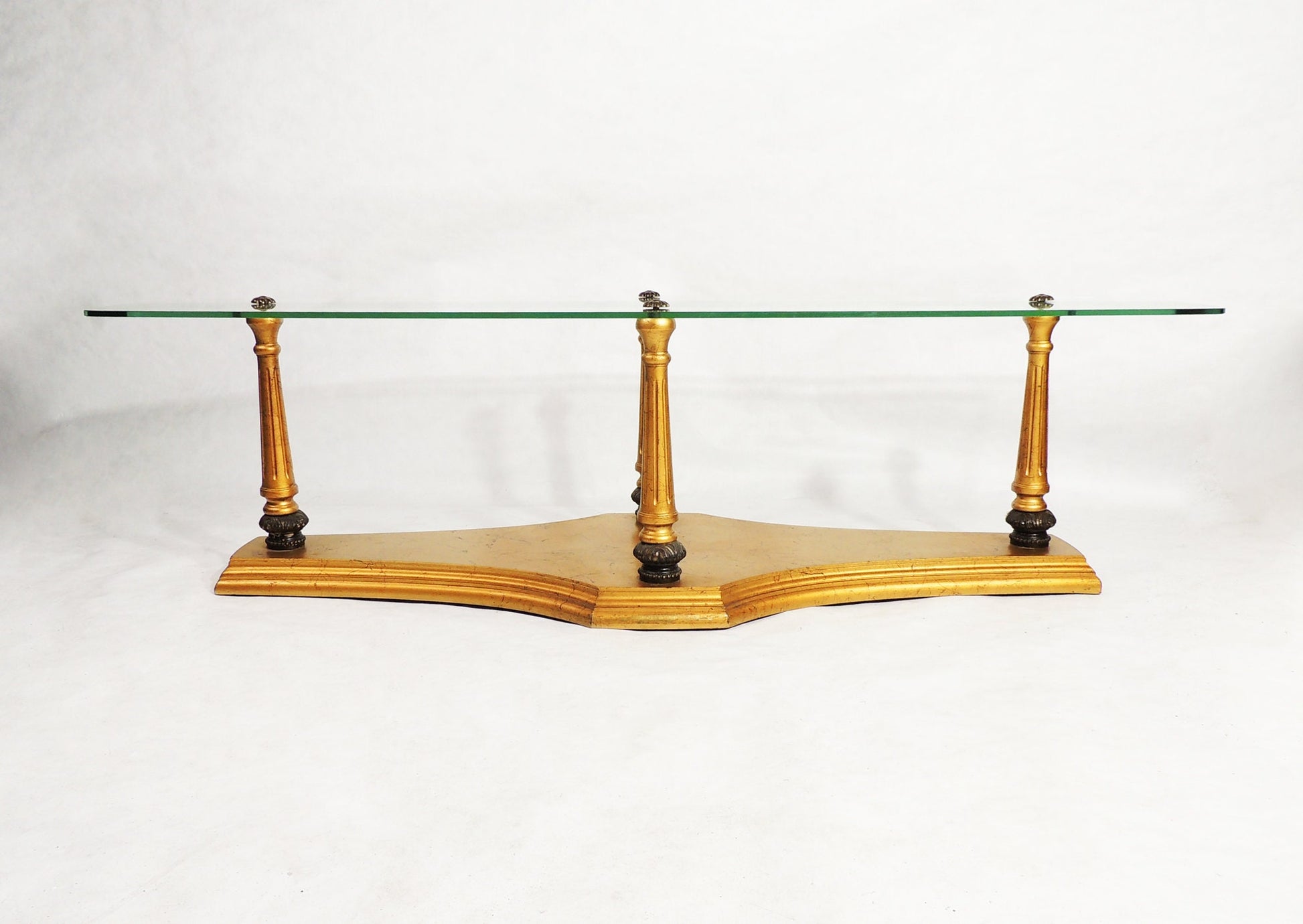Vintage Hollywood Regency Gold Wood w Glass Top Coffee Table