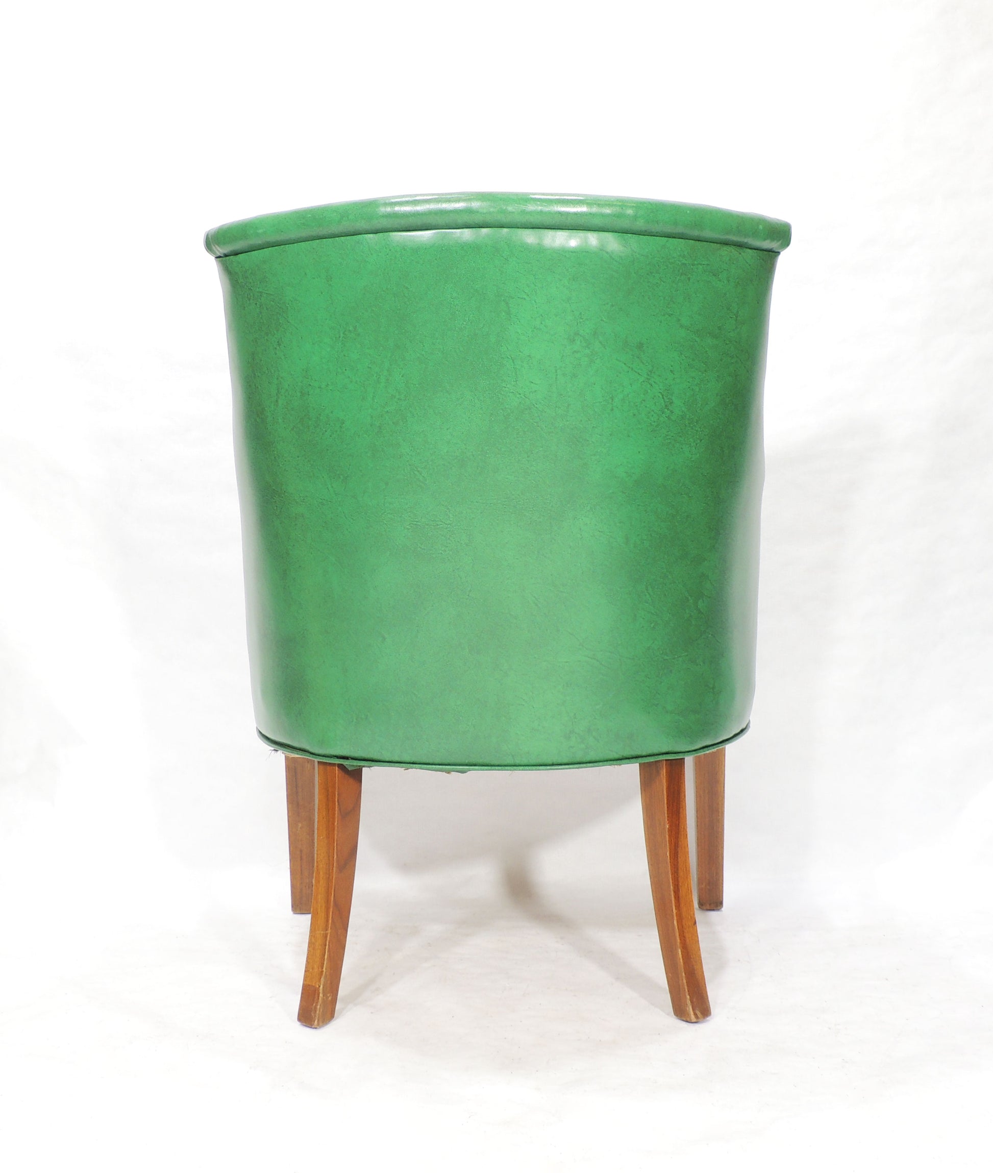 Vintage Green Vinyl Accent Armchair Solid wood Frame