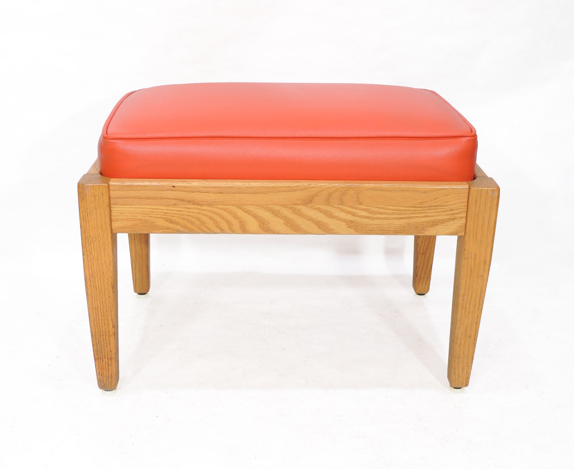 Vintage MCM era Orange Vinyl Wood Ottoman Stool