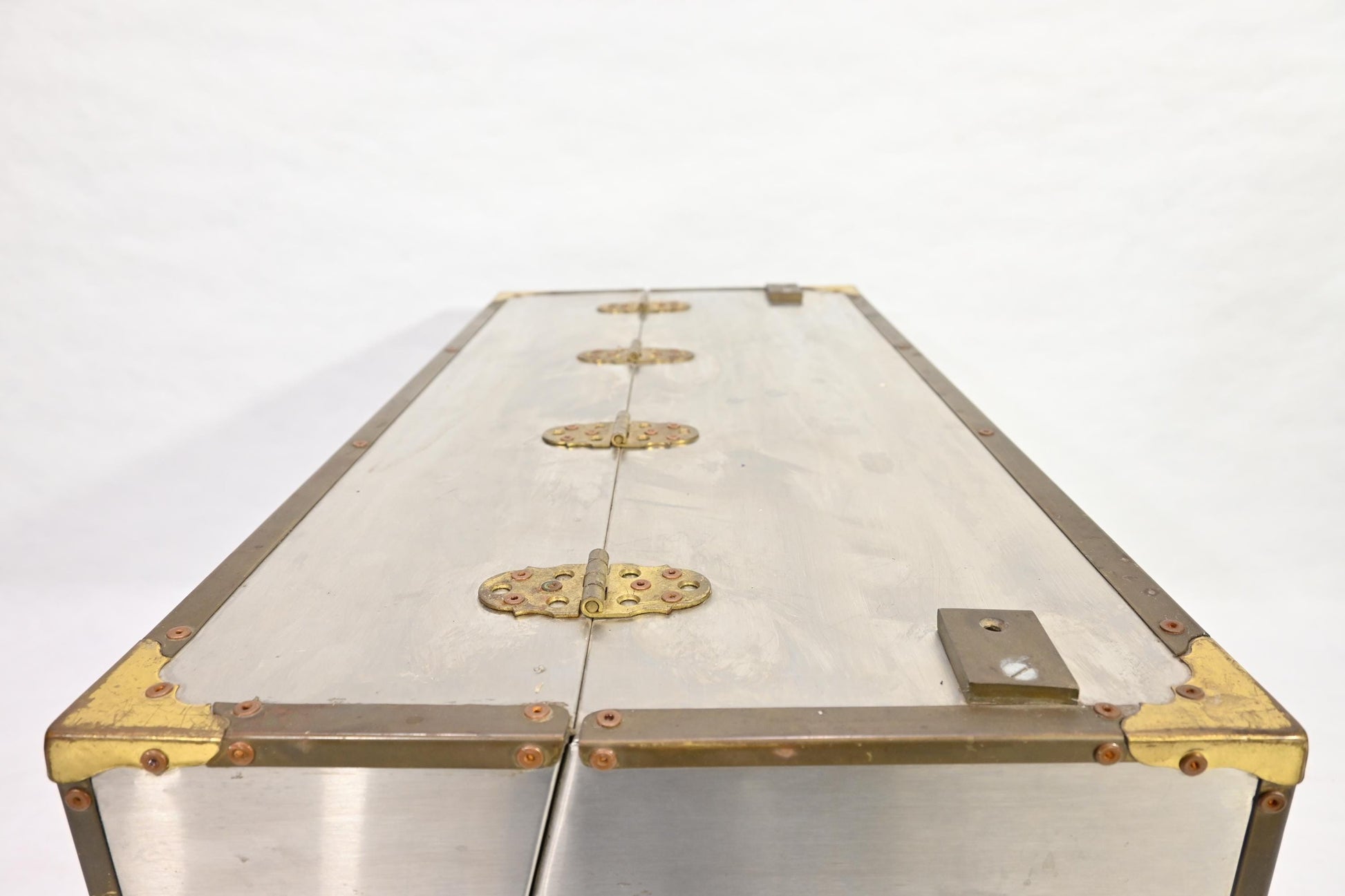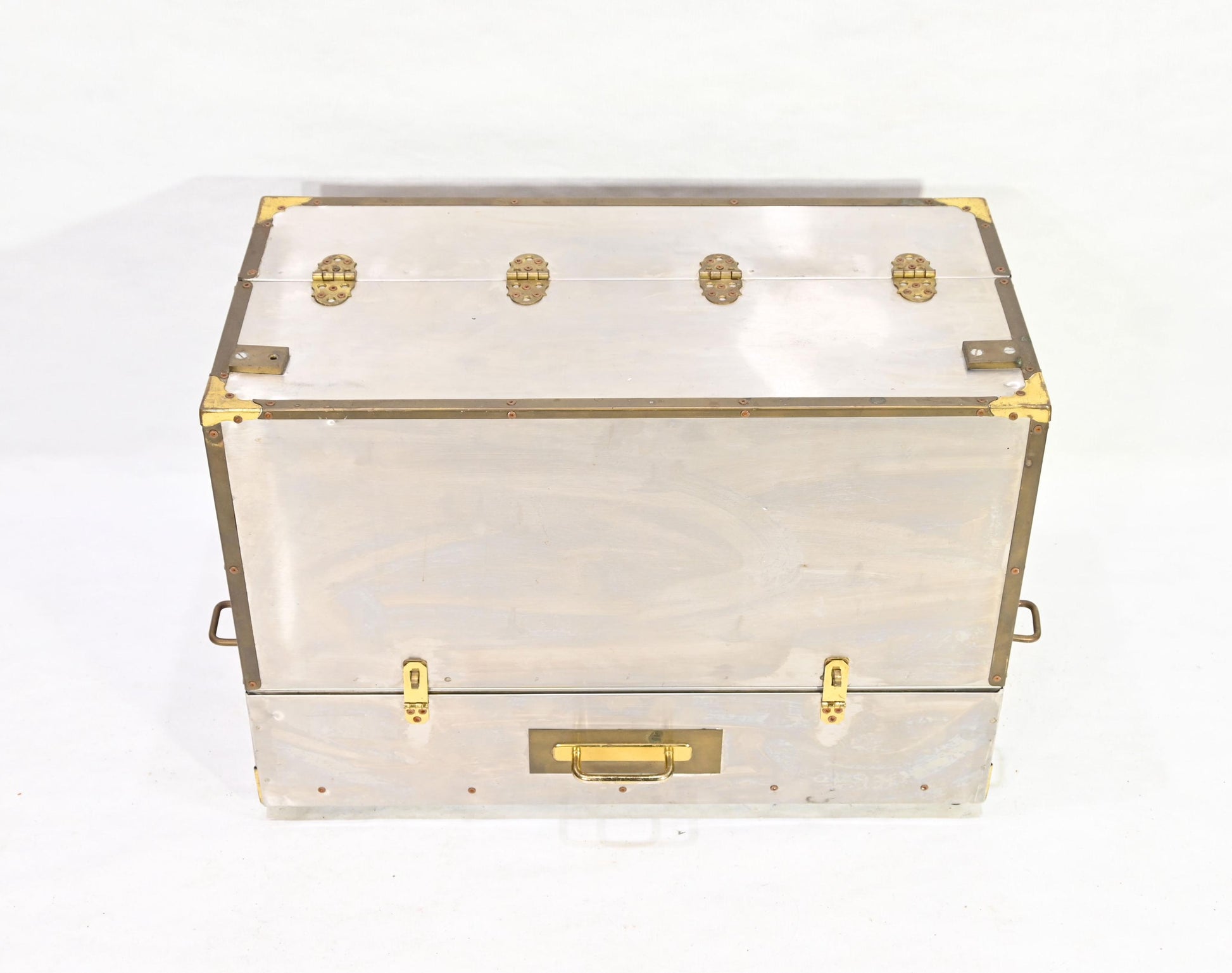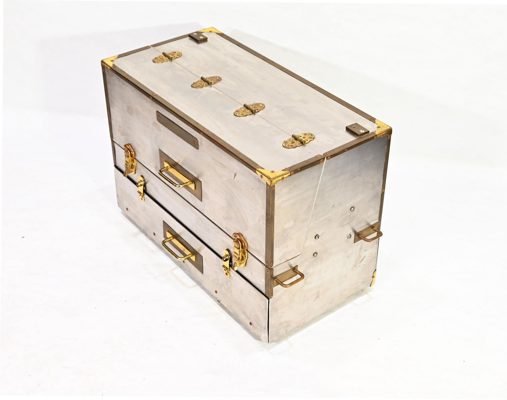 Vintage Metal Storage Case Trunk Brass handles Drawer Chest