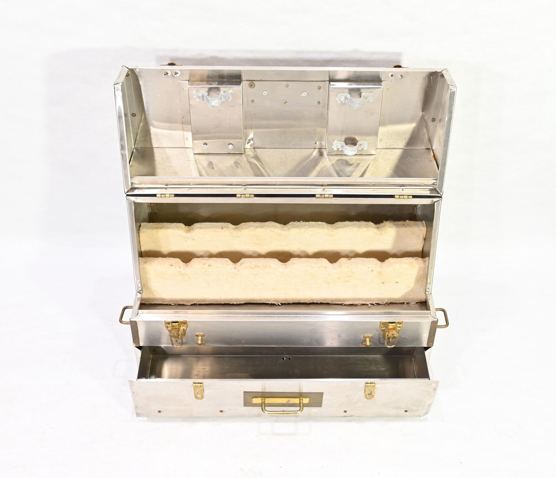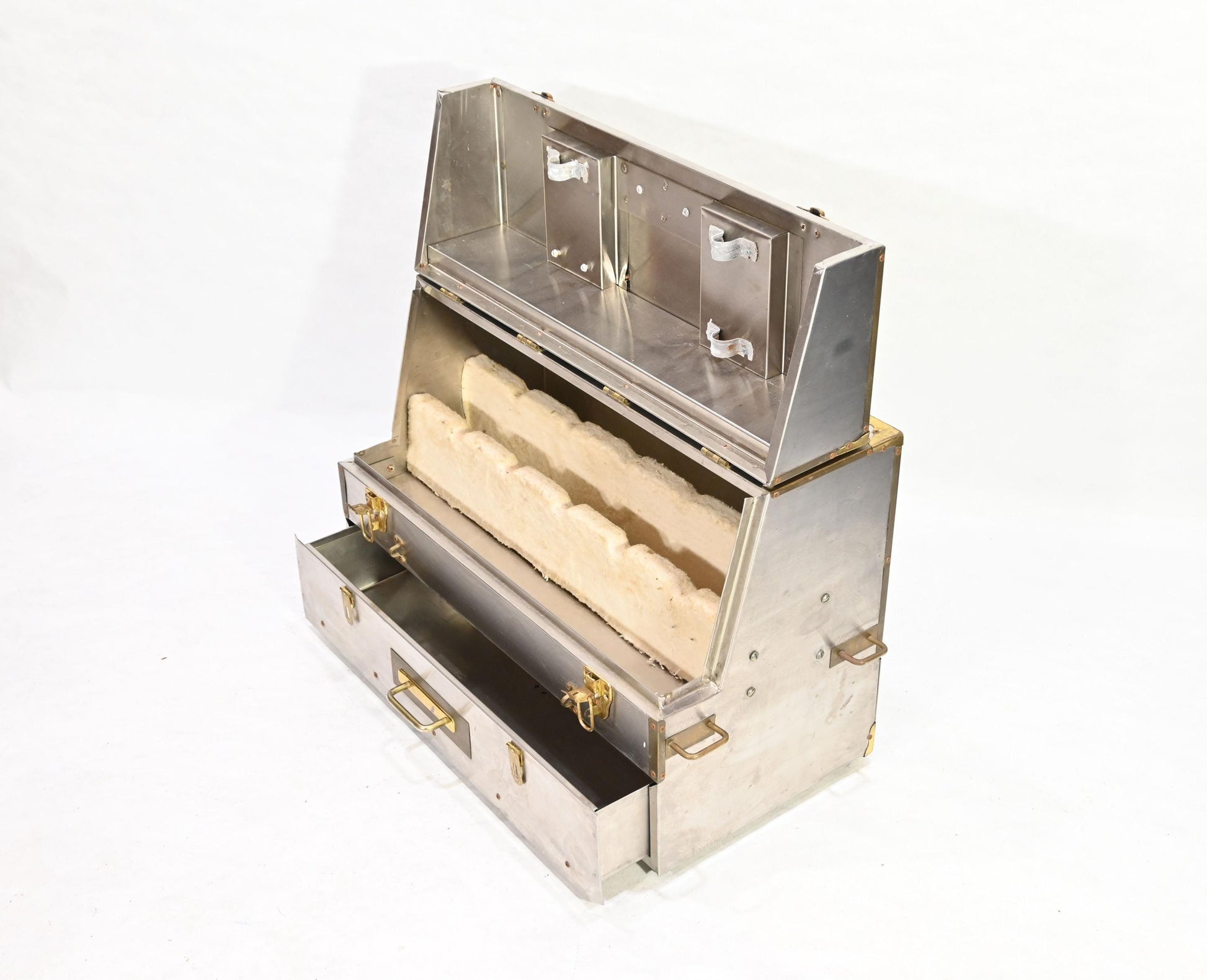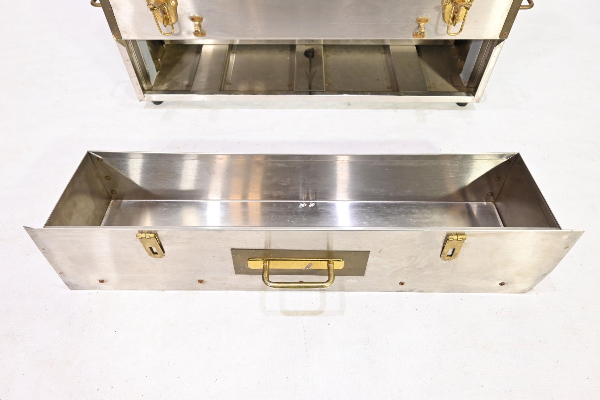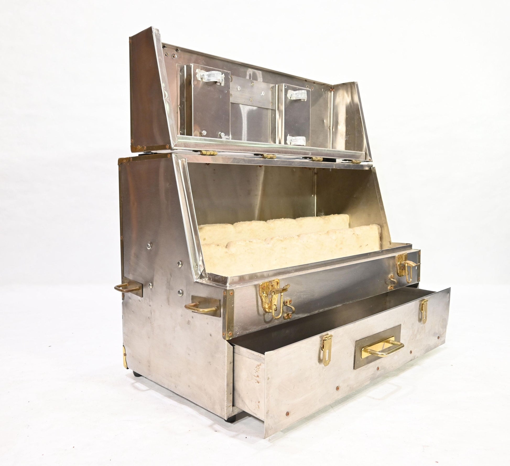 Vintage Metal Storage Case Trunk Brass handles Drawer Chest