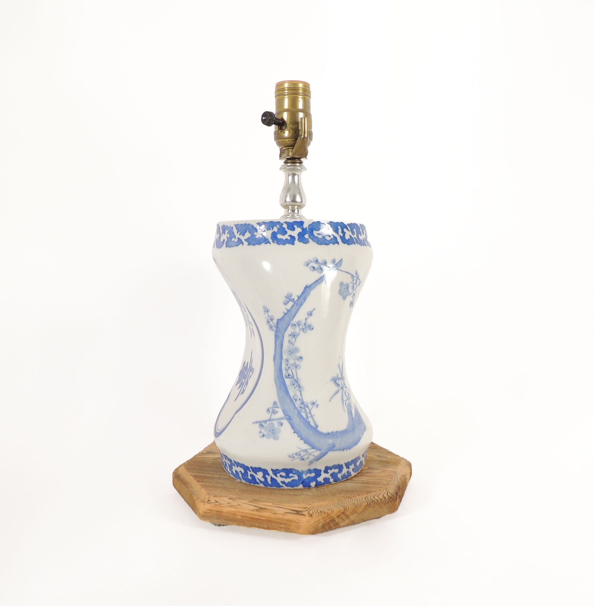 ceramic body, wood base, rotary switch located on the socket